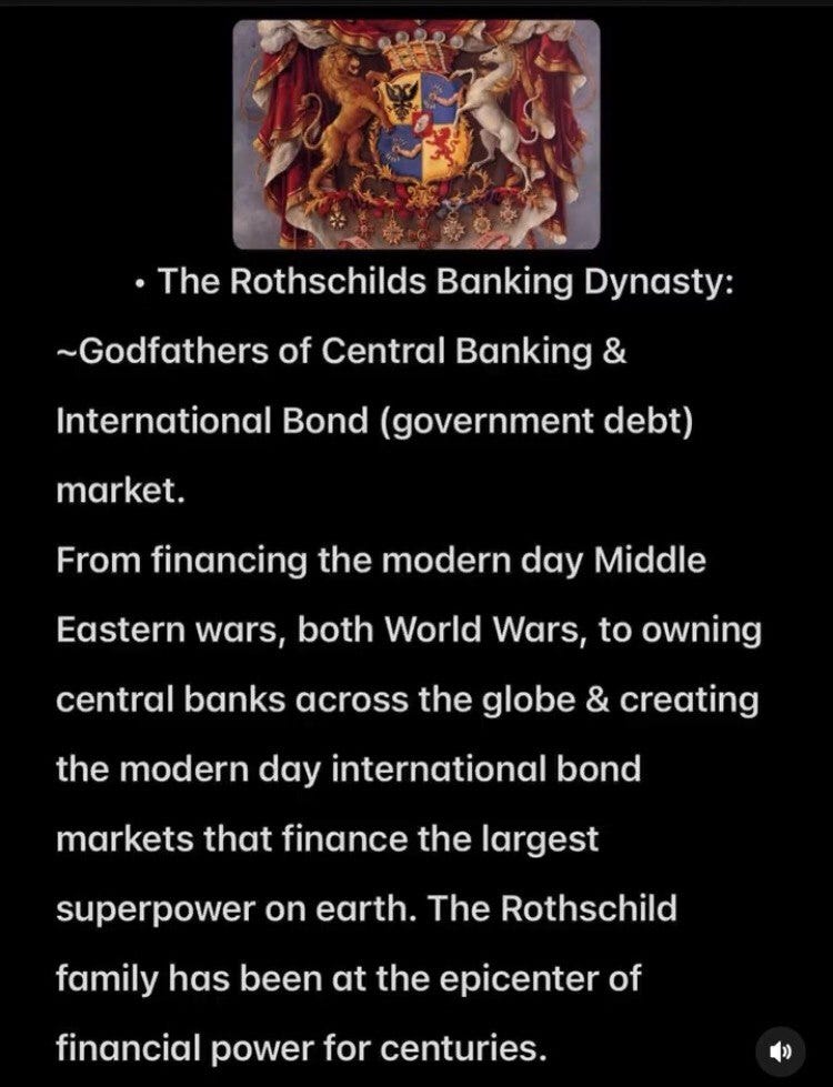 The Rothschilds are the godfathers of central banking and the international bond and government debt markets. From financing Middle Eastern wars and both world wars to owning central banks across the globe and creating the modern-day international bond markets that finance the largest superpowers on earth, the Rothschild family has been at the epicenter of financial power for centuries.